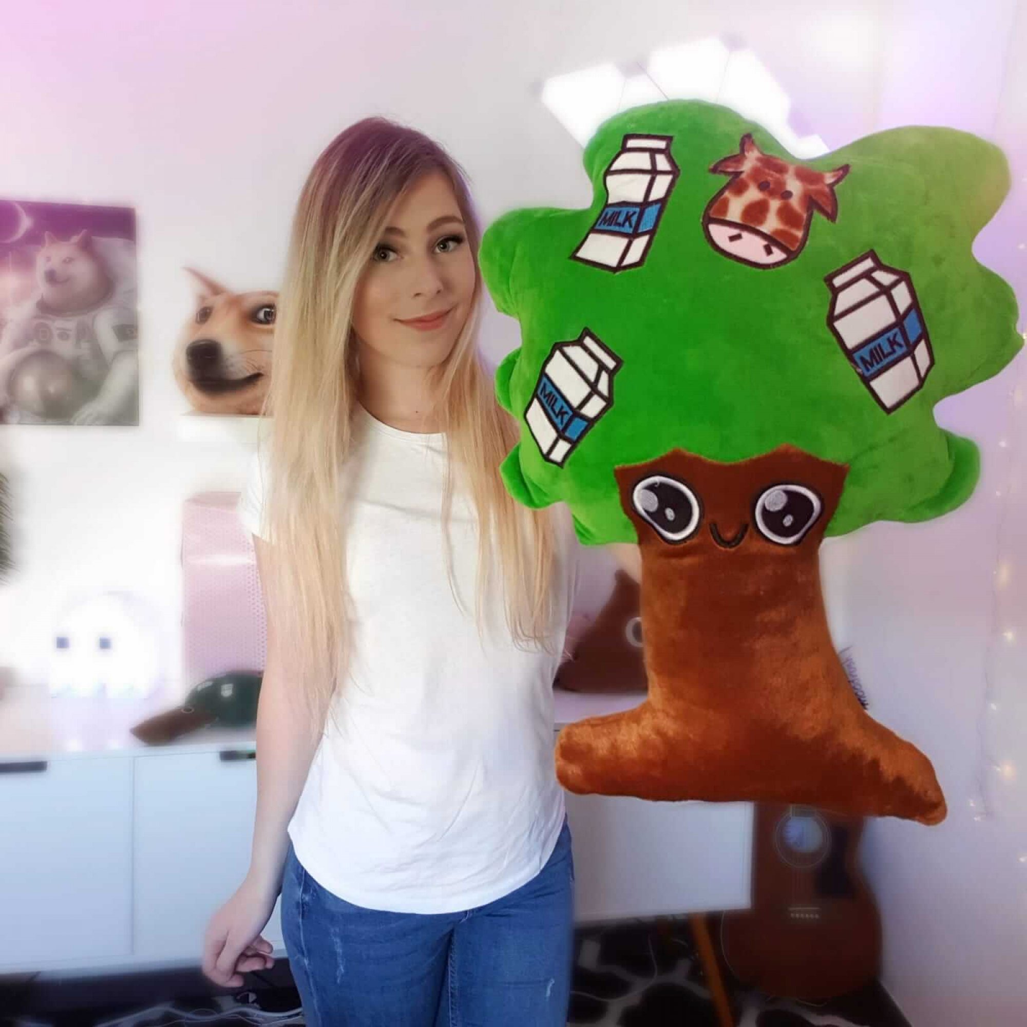 The plush pillow is made of super soft plush fabric. The Milktree is very cute and so cuddly. Milk + Tree = Milktree